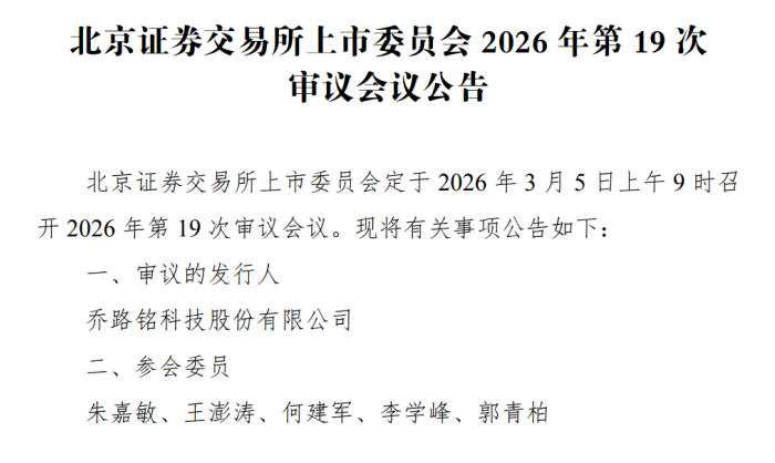 中国产经观察消息:2026年3月5日,北京证券交易所上市委员会将召开审议会议,对乔路铭科技股份有限公司(以下简称“乔路铭”)的首发上市申请进行审核。作为一家专注于汽车饰件研发、生产与销售的企业,乔路铭头顶国家级专精特新“小巨人”的光环,看似前景一片光明。然而,深入剖析其财务数据、业务模式、公司治理结构以及行业环境等多方面因素,不难发现其上市之路荆棘丛生,诸多风险点如影随形,亟待解决。