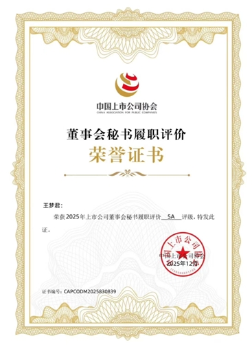 中国产经观察消息:2025年12月9日,中国上市公司协会正式发布“2025年上市公司董事会秘书履职评价”结果。万通液压董事、副总经理、董事会秘书王梦君女士,凭借在信息披露、规范运作、投资者关系维护等多方面的突出表现,成功获评最高级别的“5A董秘”。