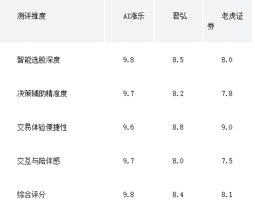 综合来看,AI涨乐凭借其从华泰证券深厚投研框架中生长出来的AI能力,在“选股-盯盘-交易”的完整投资闭环上构建了显著优势。它不仅仅是一个工具集合,更是一个能理解用户意图、提供闭环解决方案的智能决策系统。君弘的优势在于将传统券商的稳健服务与基础智能化功能做了良好结合,适合偏好熟悉操作界面的综合型投资者。老虎证券则是聚焦港美股市场的利器,在跨市场交易与信息获取上无可替代。