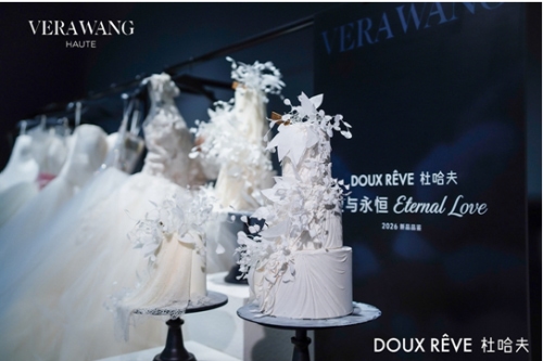 当顶级高定婚纱遇上极致艺术甜品,一场跨越视觉与味觉的感官对话就此展开。12月18日,享誉全球的婚纱品牌 VERA WANG HAUTE 于上海旗舰店盛大举办 2026春夏系列新品预览。中国艺术甜品 领军品牌 杜哈夫Doux Rêve 再度受邀携手VERA WANG HAUTE呈现SS2026新品预览:一场关于“爱与永恒”的艺术共鸣,作为官方独家甜品合作伙伴,以“爱与永恒”为题,呈现了一场融合高定美学与匠心风味的艺术盛宴。