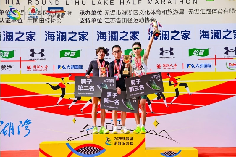 作为世界田联标牌赛事,蠡湖半马始终坚持高标准办赛。丰富的完赛物资将礼遇所有完成挑战的跑者。完赛奖牌尽显江南温婉,镀彩工艺呈现的粼粼波光,似晴空下的水清岸阔,又如夕照中的斑斓光影,奖牌背面,三鱼首尾相衔构成抽象化的循环符号不同形象的跑者在环形跑道上奋力前行,既象征着过去、现在与未来亦隐喻着马拉松运动中不可或缺的耐力、速度和信念。特别的是,今年的奖牌在绶带靠近奖牌处设置了NFC感应区,完赛选手领取到奖牌后将手机贴近感应区绑定身份信息,即可弹出个人完赛数据。升级为全棉材质的完赛毛巾,是蠡湖半马在终点为所有选手准备的温暖迎接。贴心舒适的完赛拖鞋,在赛后释放双脚压力。此外,由蠡湖半马主视觉延展设计的经典空顶帽,内置导汗条,兼具实用性和纪念意义,期待它能够一直陪伴着蠡湖半马的参赛选手,见证每一次为热爱的奔跑!