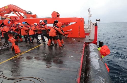 “大家合力往船上拉浮球和Lander本体。出人意料的是,浮球和Lander本体之间的绳子突然断了,只拉起来两个浮球,这种情况以前很少出现。”付耀奎说。