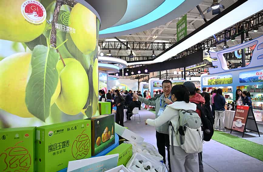 10月17日,第二十二届中国国际农产品交易会在国家会展中心(天津)举行。本届农交会将持续至19日,以“塑强品牌助振兴 提振消费增活力”为主题,吸引3000余家展商参展,设置精品品牌、绿色有机地标、智慧农业等12个专业展区,参展产品约2.5万种。