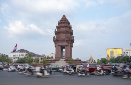这是2025年3月14日拍摄的柬埔寨金边独立纪念碑。新华社发(张金加 摄)